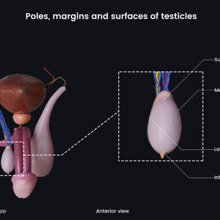 Poles, margins and surfaces (anterior view) of testicles